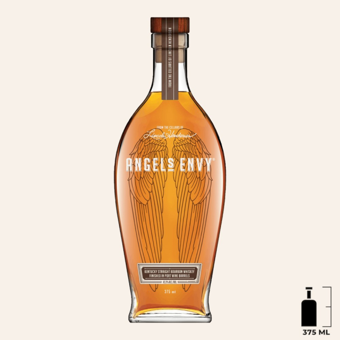 Experience the sophistication of Angel's Envy Kentucky Straight Bourbon Whiskey in a perfectly sized 375ml bottle, ideal for gifting.