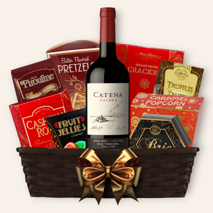 Make your next occasion truly special with this beautifully presented gift basket featuring Catena Malbec.